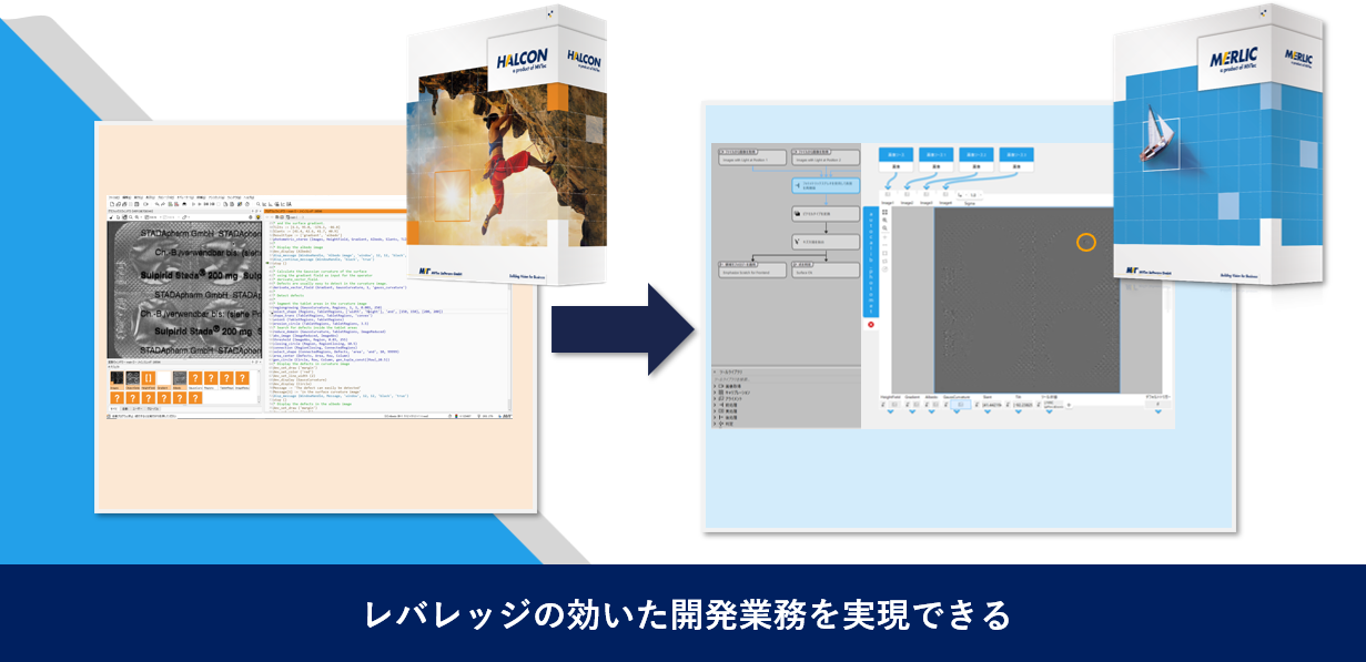 世界標準の画像処理ライブラリ「HALCON」をベースとしているため、最新のアルゴリズムやディープラーニング機能を安価かつ迅速に適用できます。R&D部門が高度な処理を組み込み、現場がそれを簡単に使うという理想的な役割分担が実現しました。