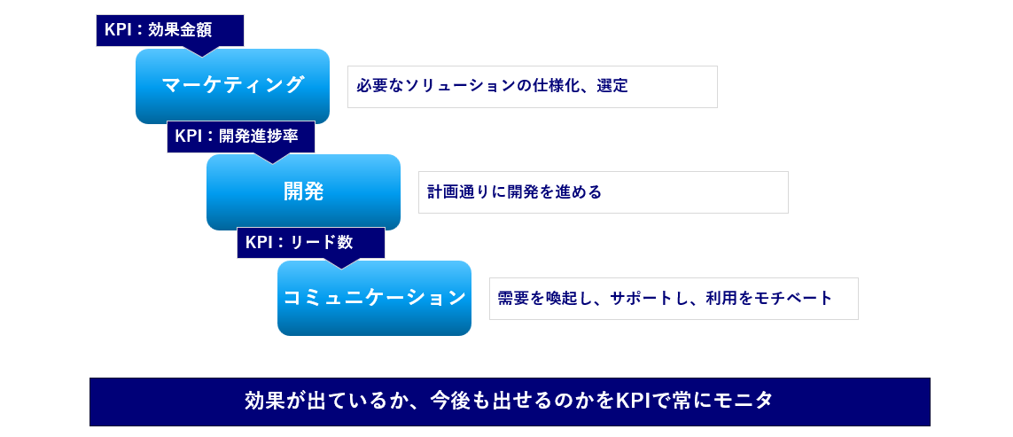 - KPIによる可視化:導入による効果金額や開発進捗、リード数を常にモニタリングし、サステナブルな原価低減を実現しています。
