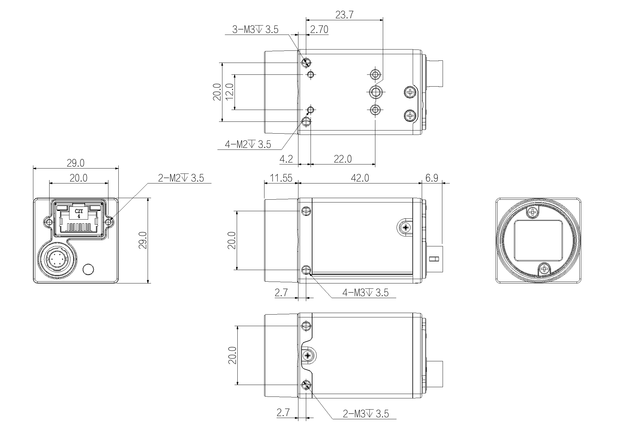 | ピクセルフォーマット | Mono8,BayerRG8/10/10Packed/12/12Packed,YUV422_8_UYVY,YUV422_8 |