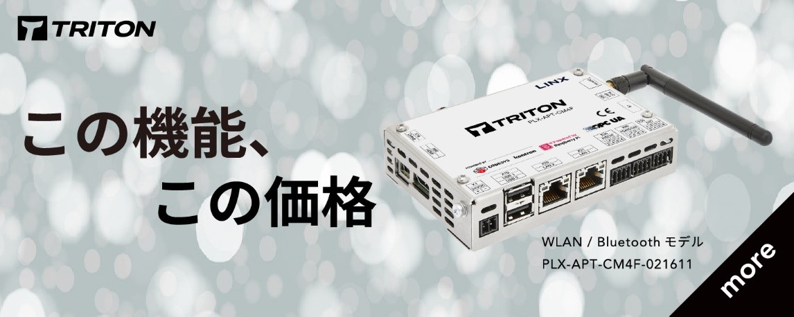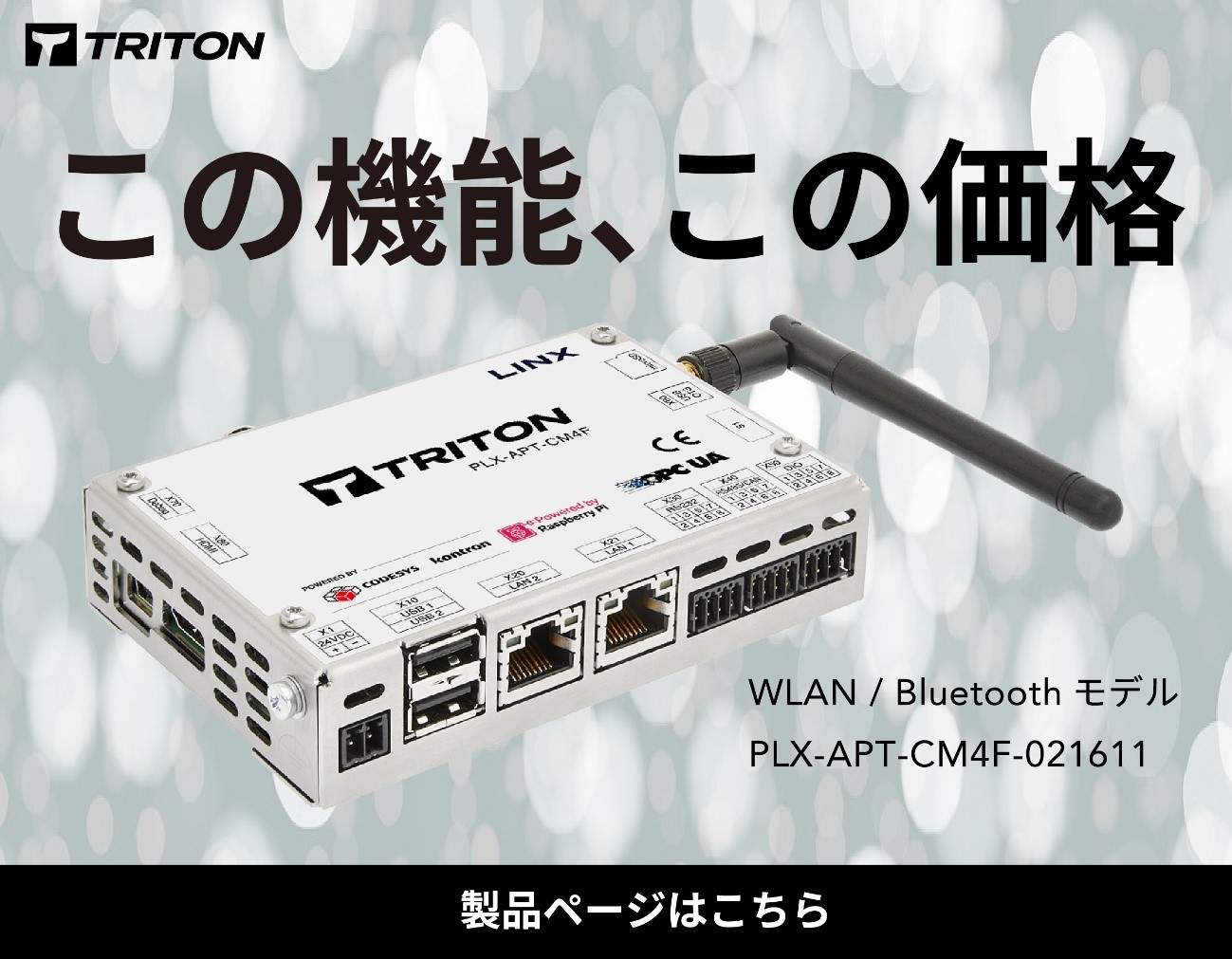 『TRITON』は、コストパフォーマンスに優れた高性能のハードウェアとチューニング済みのOSにソフトウェアPLC【CODESYS】をパッケージしたオールインワンのPLCです。