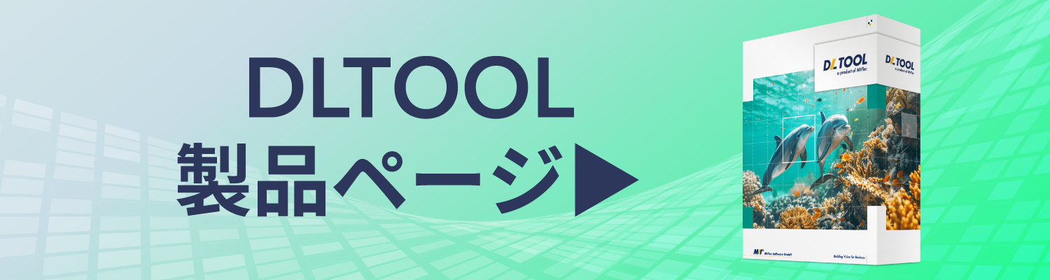 Deep Learning Tool(以下、DLTOOL)は、クラス分類や欠陥検出といった様々なディープラーニングのモデルを作成できる、オールインワンのツールです。DLTOOL単体で、画像のラベル付け、モデルの生成、そしてそのモデルの性能評価までを、マウス操作で簡単に実行できます。