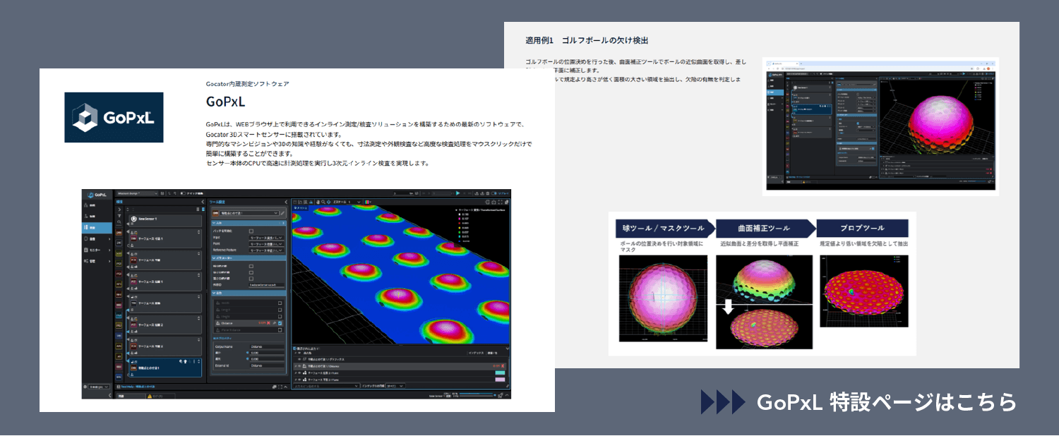 Gocator内蔵ソフトウェア『GoPxL』の新機能の一部を紹介しました。詳細については新たに公開された『GoPxL特設ページ』をご確認ください。