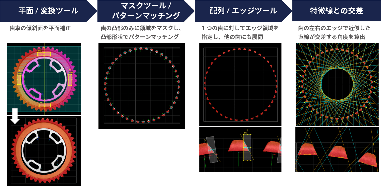 「配列」および「グリッド」形式に対応したことで、複数のデータに対して行う同じ計測処理を1つにまとめられるようになりました。半導体パッケージのBGAのように1つの対象物に数十個の凹凸があるケースにおいて、特にその効果を発揮します。
