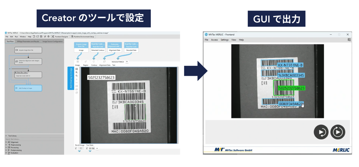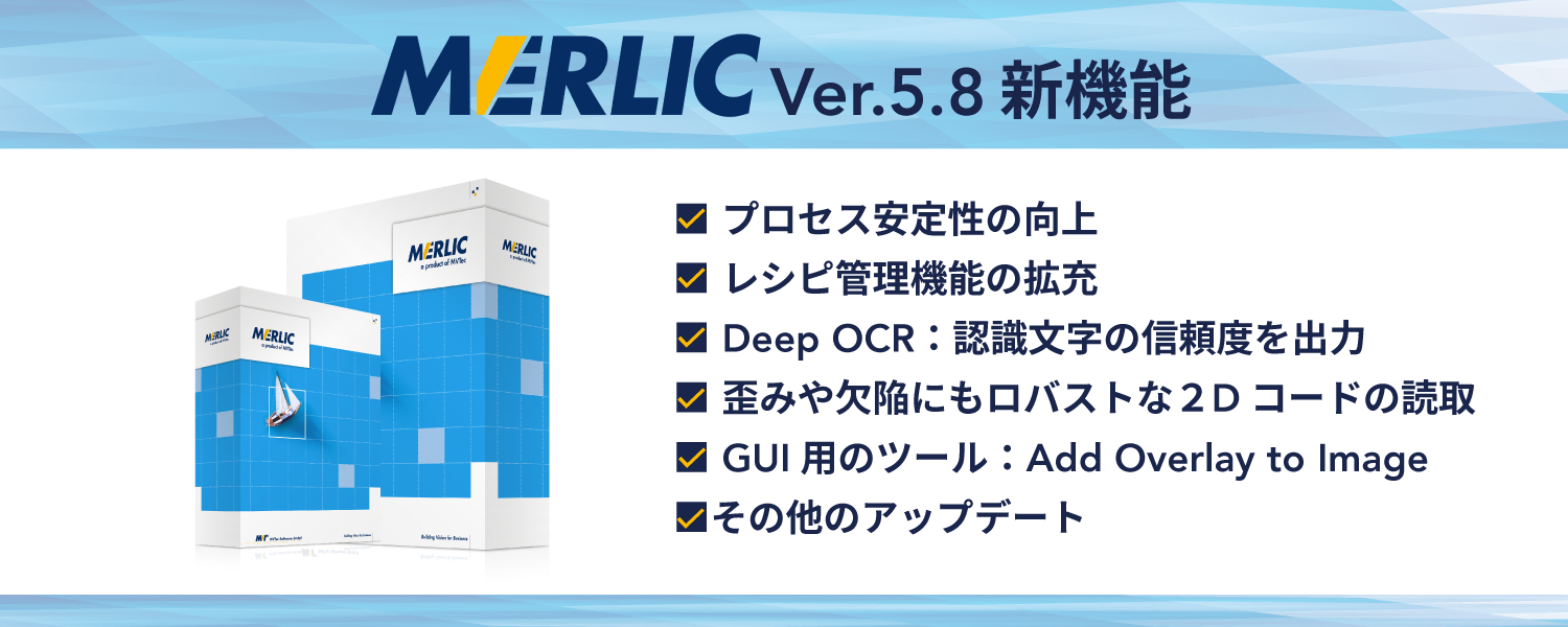 前回のMERLIC 5.7のアップデートに引き続き、プロセス安定性の向上やレシピ管理画面の拡充など、現場適用時の安定性や利便性を高める機能が追加されています。また、文字認識やコード読み取り機能の拡充や、GUI表示の画像への重ね合わせ機能の追加など、画像処理ソフトウェアとしての使いやすさがますます拡大しています。