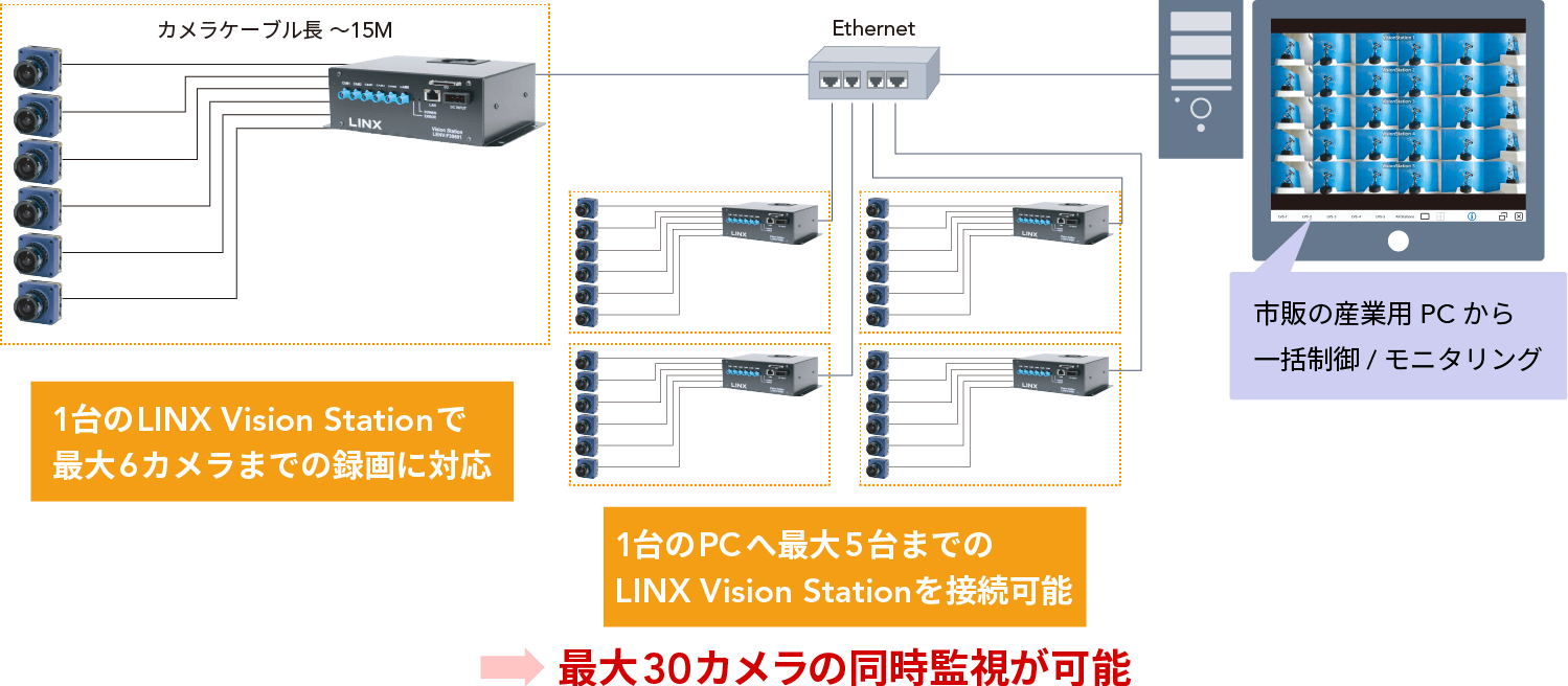 Vision Station 1台には、最大6台までのカメラを接続できます。(6台未満での使用も可能です)