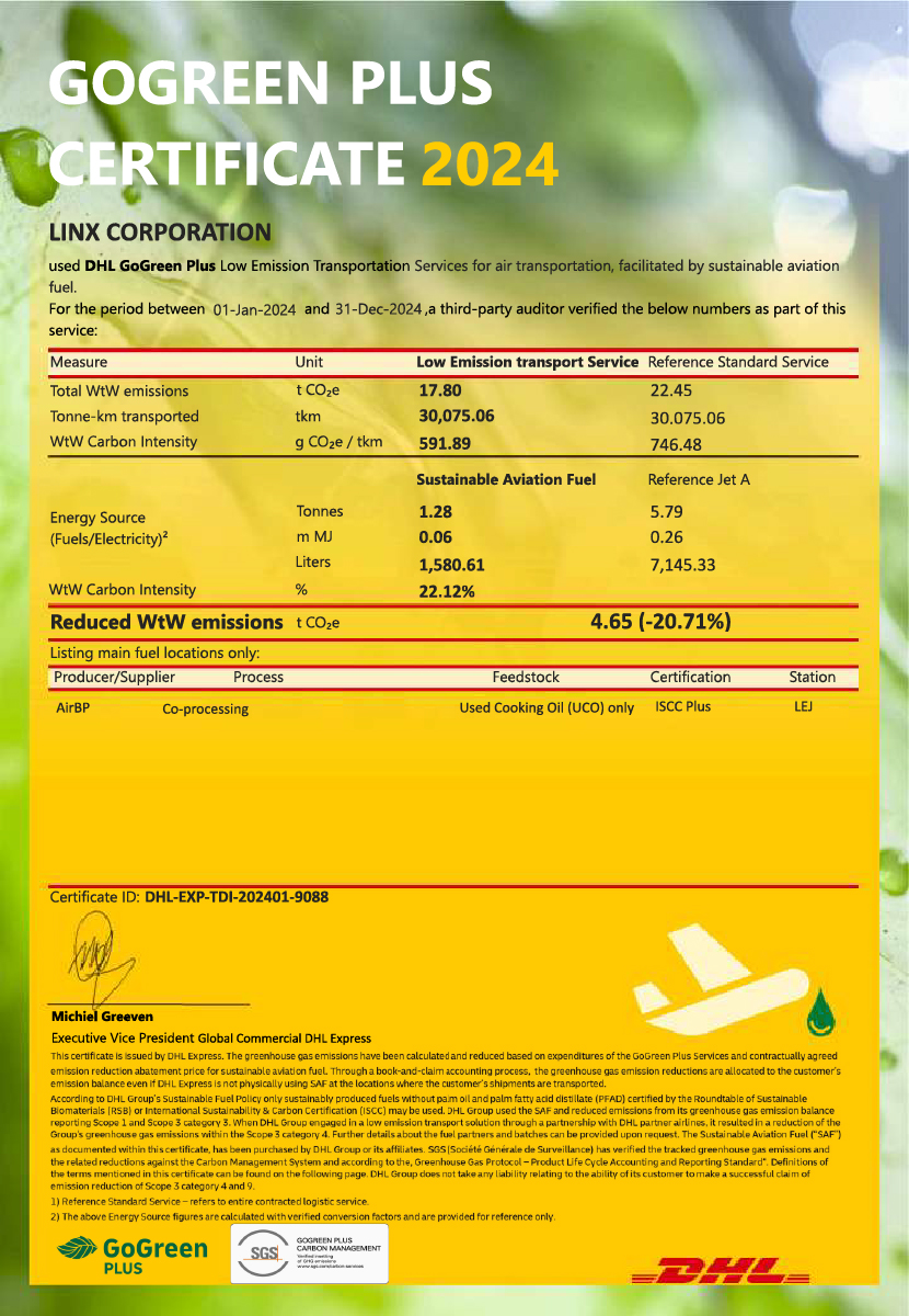株式会社リンクスでは、温室効果ガスを削減する取り組みとしてDHLグループの輸送サービス「GoGreen Plus」を2024年2月より導入いたしました。