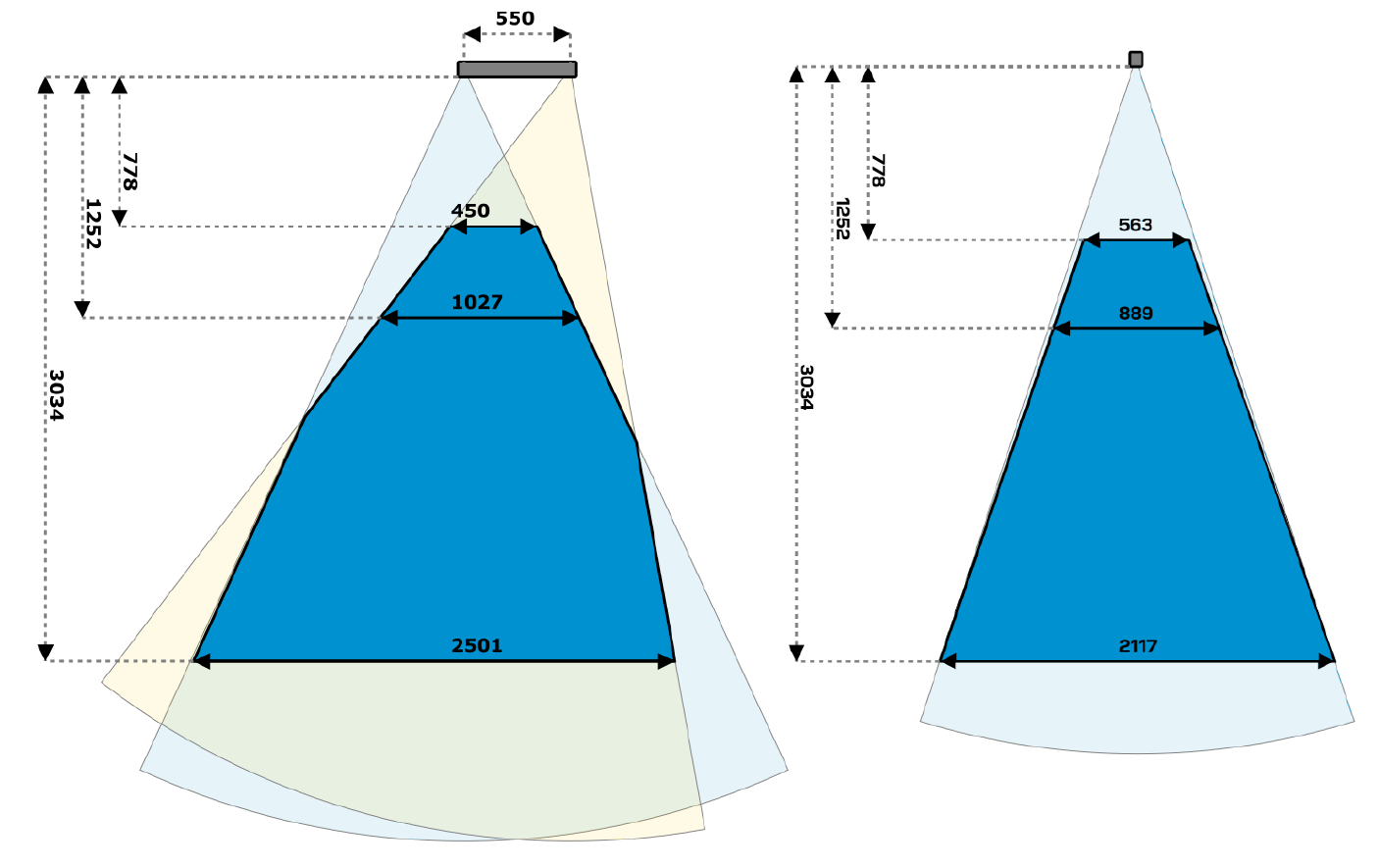 | スキャン距離 (mm) | 778(近) - 1252(中) - 3034(遠) |