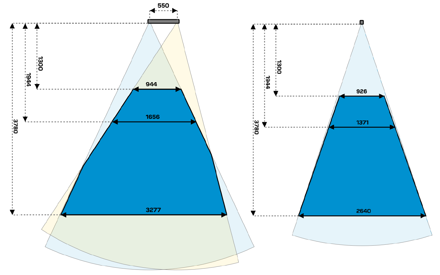 | スキャン距離 (mm) | 1300(近) - 1944(中) - 3780(遠) |