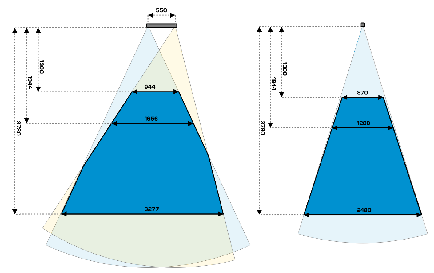 | スキャン距離 (mm) | 1300(近) - 1944(中) - 3780(遠) |