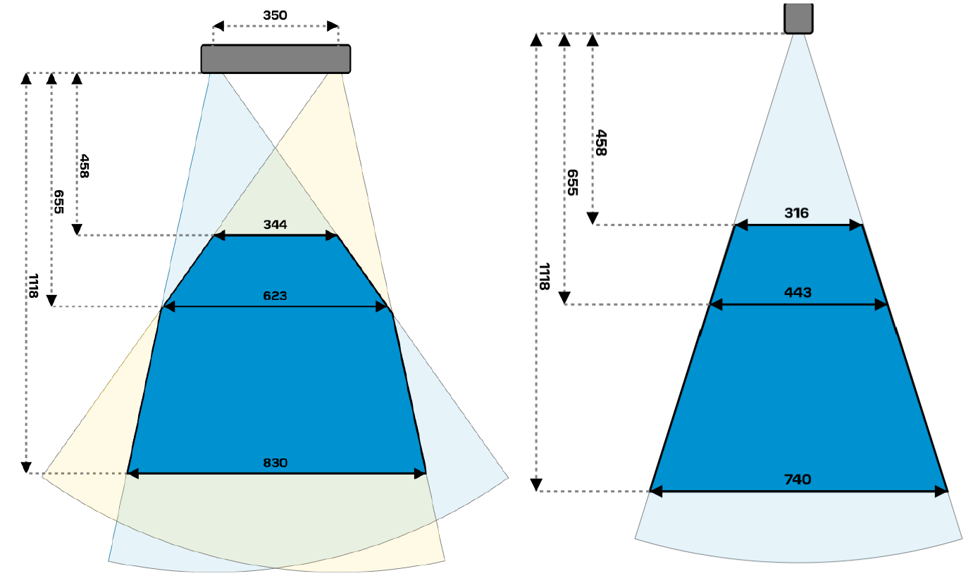 | スキャン距離 (mm) | 458(近) - 655(中) - 1118(遠) |