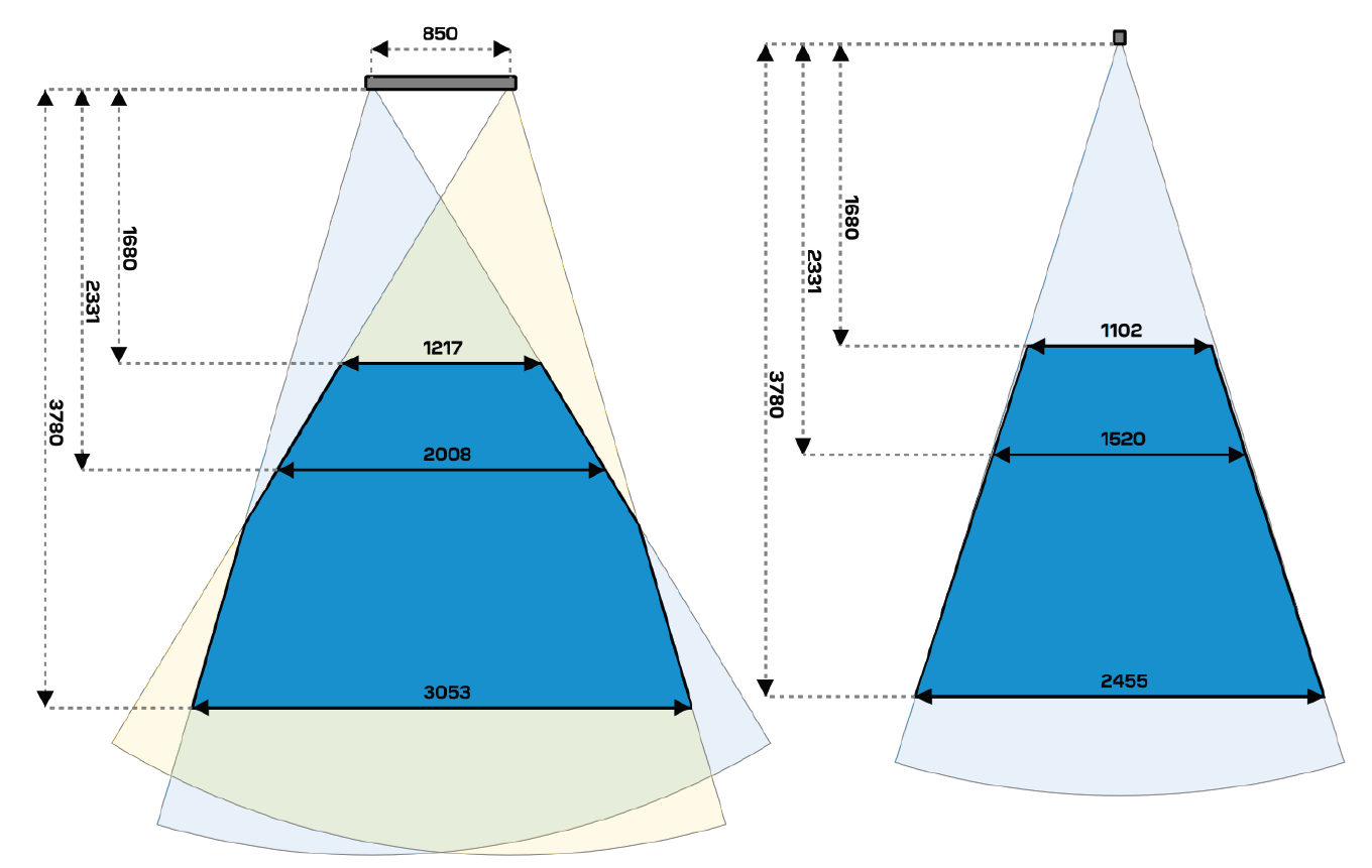 | スキャン距離 (mm) | 1680(近) - 2331(中) - 3780(遠) |