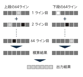 128段、64段、32段など段数の違うTDIセンサを分けて配置することで3つの特長機能を実現しています。